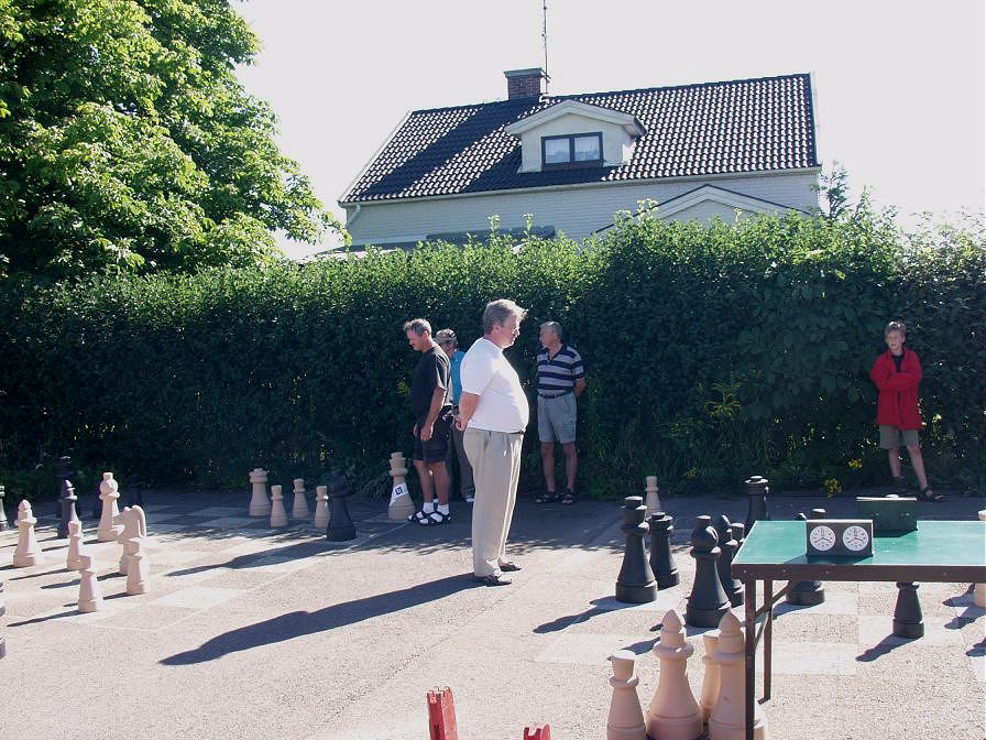 | Peter står mitt i brädet och funderar på sitt drag | Simon står i skuggan när allt